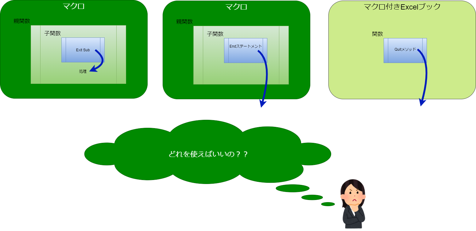 マクロを終了するとは?(それぞれの要望の違い)